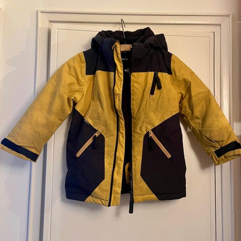 Lasten talvitakki koossa 110. Kaunis talvinen jääkarhukuosi, ihana lämmin fleecevuori, isot tähtiheijastimet. Irrotettava turkki, takin voi siis käyttää myös ilman. Erittäin siisti kunto.