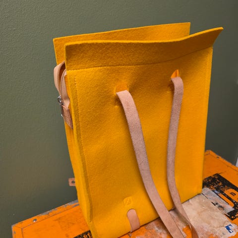 Huopalaukku olkalaukku unisex-käyttöön, valmistettu villahuovasta 100 %. Laukku on pinkin värinen ja siinä on säädettävä olkahihna. Sisätiloissa on taskuja pienten esineiden säilyttämiseen. Jonas Hakaniemen suunnittelema Lahtisen huopatehtaalla
