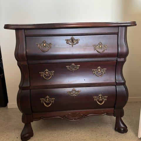 Puupeili lipasto viidellä laatikolla.