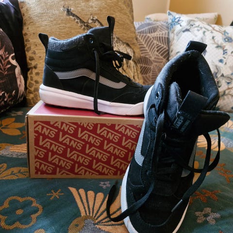 Vans-merkkiset talvikengät kokoa 40. Keskipituinen varsi, vedenpitävä alaosa, pitävä pohjakuviointi.