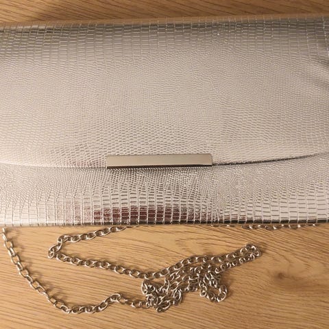 Pieni hopeinen glitter iltalaukku. Voi pitää kädessä tai halutessaan olkanauhan kanssa.
