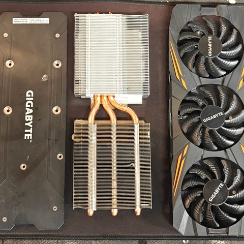 Gigabyte GA-H110-D3A jossa joku Intelin prossu kiinni. Lisäksi 2x4gb Dddr muistia ja kuvissa näkyvät riserit. Poistettu toimivana käytöstä ja jäänyt kaappiin pölyttymään.