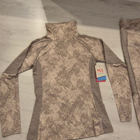 Kuvanmukainen setti, väri vaaleanharma, koko M, uusi, laput kiinni. Todella mukavantuntinen materiaali. Itselläni on käytössä sama setti (eri väreissäkin), kestää hyvin pesut ja kulutuksen.