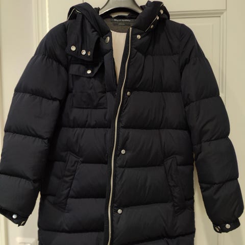 Vähälle käytölle jäänyt Marc O’Polon untuvatakki. Todella hyväkuntoinen, hihat sekä kaulus siistit. Vetoketju jäänyt sen ns ”suojaläppään” joskus kiinni, joka on paikattu melko huomaamattomasti, ei näy käytössä lainkaan. Korjauksesta kuva viimeisenä. Merkattu koko 42, mutta vastaa ennemmin L/40 kokoa, malliltaan vähän istuvampi. Pehmeä trikoovuori. Hupun saa halutessaan irti. Molemmissa sivusaumoissa vyölle lenksut, mutta vyötä tähän ei enää löytynyt.