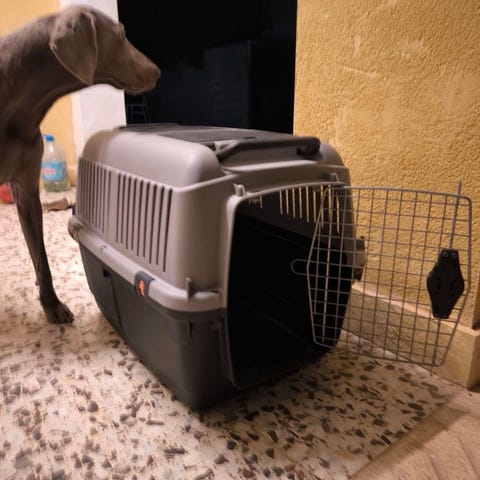 Ferplastin kuljetusboksi koiralle esim. autoon. Ollut meillä käytössä kahdella dandiella, mutta jäänyt vähälle käytölle. Kevyestä, mutta kestävästä muovista tehty häkki, jossa ovi liukuu molempiin suuntiin ja suuret ilma-aukot pitävät ilman kiertävänä. Sivuilla olevista kahvoista koiran kuljetushäkki on helppo nostaa auton tavaratilaan.