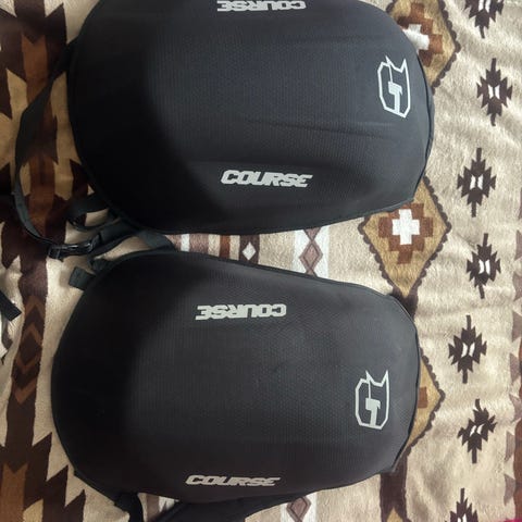 L/XL kokoiselle sopivat uudet ja käyttämättömät selkäpanssari / ajopanssari (L/XL) ja polvisuojat (XL). Molemmissa hyvät tarrasäädöt. Molempia testattu n.185cm pojan päälle (vaatekoko XL), niin ovat sopivat, eli menee juuri L/XL kokoiselle. Ajopanssarin pituus 64cm.