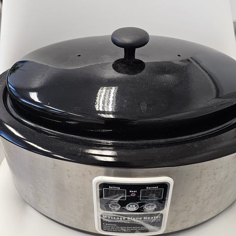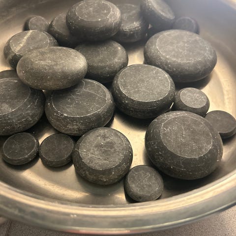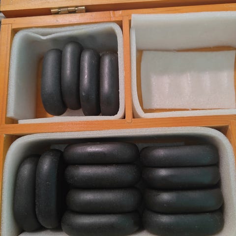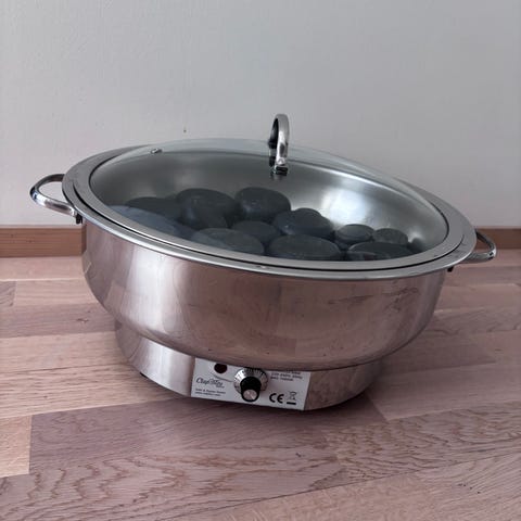 Kivilämmitin 6 l, kivet, pihdit ja opetusvideo kivihierontaan.