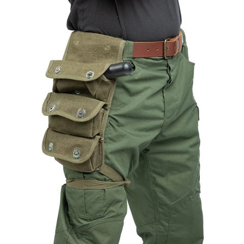 Brittiläiset 40 mm kranaattitaskut, 2 kpl. Edessä neppari ja solki. Takana pals kiinnitys. Mitat: n. 11x4,5x4 cm. Nouto Leppävedeltä, postikulut ostajalle tai toridiili. MMM.