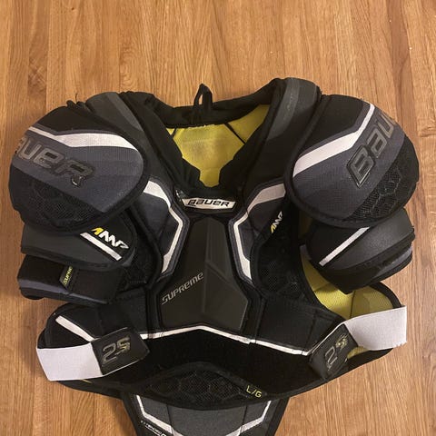 Bauer Supreme rintapanssari/ hartiasuoja, koko Junior M. Sopii noin 145-160 cm pitkälle pelaajalle. Pientä pintakulumaa huomioon ottamatta kunto erittäin hyvä ja kaikki tarrakiinnitykset ehjiä. Ei postitusta.