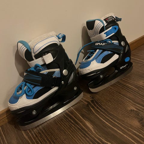 Graf luistimet lasten koko 31-34, säädettävät. Väri valkoinen ja violetti. Soveltuvat jääkiekkoiluun.