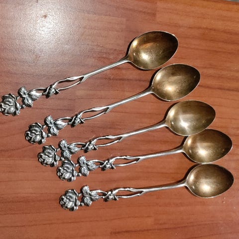 Uushopeinen UH Ruusulusikka, kahvilusikka. Hinta 5 euroa kpl. Kaupat Tampereen keskusta Metso kirjasto
