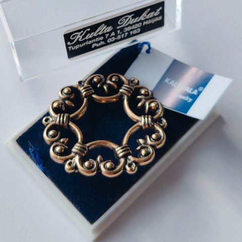Mukana alkuperäinen rasia sekä korun tarina (suomi/englanti/ruotsi/saksa). Loppuunmyyty Kalevala Korun sivuilla: https://www.kalevala.fi/products/pidetty-suomuhauki-rintakoru-pronssi?_pos=1&_sid=8c9b952c3&_ss=r