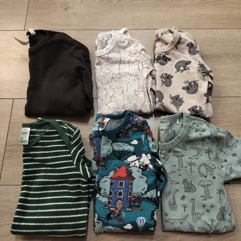 Myydään vaatepaketti kokoa 80-92. Vaatteet pääosin hyvässä kunnossa, joissain näkyy käytön jälkiä. Pesty hajusteettomalla pesuaineella, savuton ja eläimetön talous. Toimitus Toridiilinä tai nouto Oulun Kivikkokankaalta.