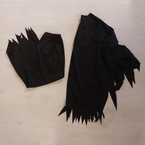 Unisex sininen pehmeä kerrasto, jossa on hupullinen yläosa ja napit edessä. Materiaali on pehmeää ja lämmin, soveltuu rentoon käyttöön tai sisävaatteeksi. Hupussa on koristeena kasvonpiirteet ja korvat.