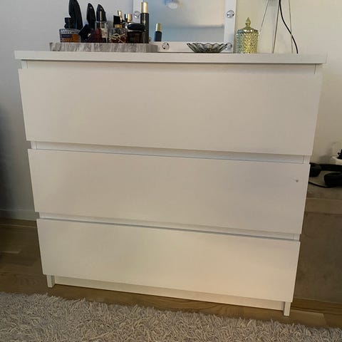 Lastenhuoneessa ollut Ikea Malm lipasto nyt edullisesti uuteen kotiin. Pieniä kolhuja ja kulumia etenkin päällilevyssä (ks kuvat). Laatikoissa myös pieni väriero (auringon synnyttämä), näkyy kuvissa vielä selkeämmin kuin luonnossa.