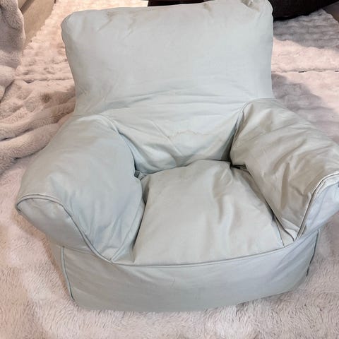 Jollyroom lasten nojatuoli, jossa on vaalea verhoilu ja puiset jalat. Sopii lasten huoneeseen tai oleskelutilaan istuimeksi.
