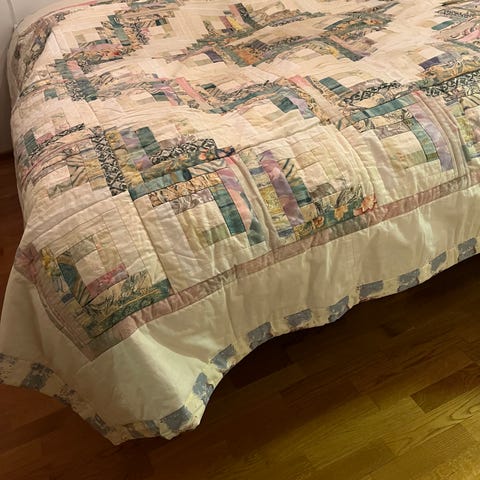 Itse puuvillakankaista ommeltu tilkkupeite.