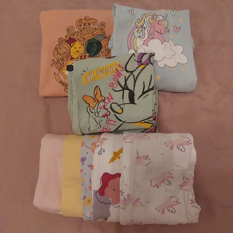 Pieni vaatepaketti, kahdet farkut ja trikoopaidat tytölle, koko 104