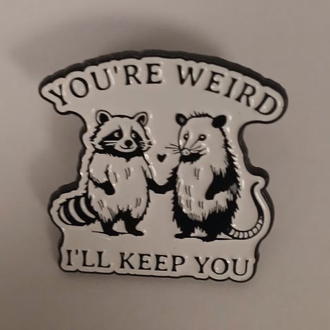 Metallinen rintakoru tekstillä: I'm not weird - I'm limited edition. Mitat noin 1,5 x 2,8 cm. Kunto uutta vastaava.