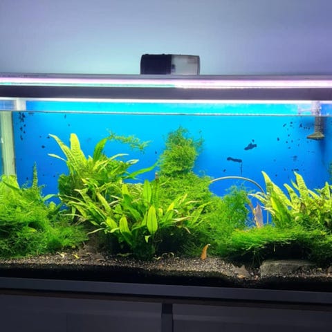 Valkoinen akvaariokaappi ja akvaario (Juwel 120 l). Käytetty, hyväkuntoinen.