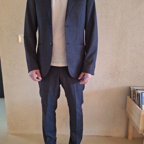 Tiger of Sweden Nedvin miesten tummapuku (tummansininen) koko 50. Takki ja housut on valmistettu 100% villasta. Takin hihoja lyhennetty hieman.