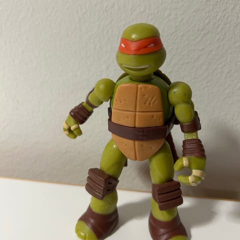 Teenage Mutant Ninja Turtles toimintahahmo, jossa punainen asuste ja harmaa vartalo. Hahmolla on punaiset käsineet ja ruskeat kengät. Sopii keräilyyn tai leikkiin.