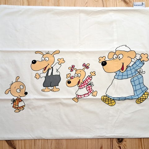 Myydään siistikuntoinen Mauri Kunnaksen Herra Hakkarainen -tyynyliina. Koko 65 cm x 50 cm.