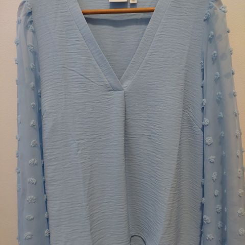 Uusi yhdenkoon silkkiviskoosipaita. Kiinteä alustoppi. Epäsymmetrinen helma. Alustopin kulmassa pieniä paljetteja. Vesiputouspääntie. Hintalappu paikoillaan.