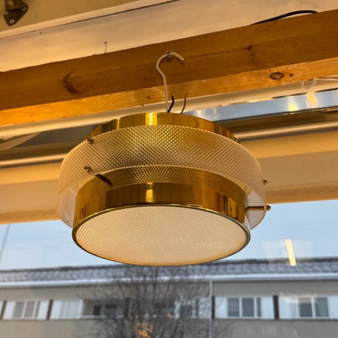 Retro kattovalaisin. Neljä valopistettä. Rottinkipunos. Haluttu malli. Halkaisija 50cm, korkeus 10cm.