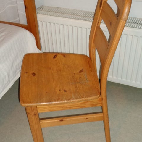 Yksi puinen tuoli. Pientä käytön jälkeä löytyy.