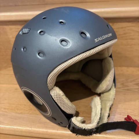 Salomonin musta laskettelukypärä koko M. Kypärän kokoa voi säätää rullalla. Takana sträppi joka pitää lasit paikoillaan. Joitain käytön jälkiä.
