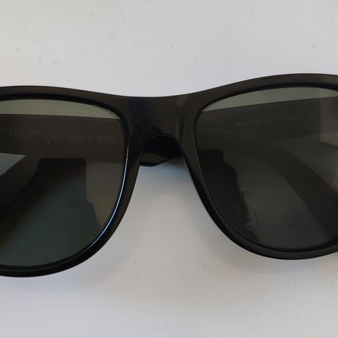 Ray-Ban Wayfarer aurinkolasit unisex-käyttöön. Kehykset ovat mustat, ja linssit ovat tummat. Malli on RB 2140, leveys 54 mm ja sangan pituus 150 mm. Kehykset on valmistettu Italiassa.