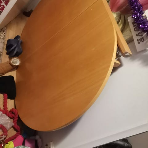 Annetaan aitoa puuta oleva valkoinen neljän istuttava ruokapöytä uuteen kotiin muuton tieltä.
