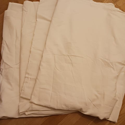 Verhot 3 kpl leveys 142cm, pituus 254 cm, alareunassa käänne 10 cm, yläreunassa n. 1cm