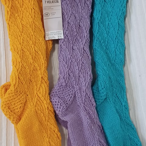 Novita 7 velj langasta käsinkudotut villasukat, vahvistettu kantapää. Koko 38 - 39 ja varr.pituus noin 46 cm. Postitus onnistuu. MMM.