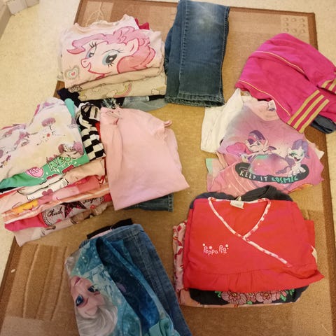 Kahdet housut, kaksi paitaa ja Adidas verkkaritakki. Kaikkien koko 110 ja siistissä kunnossa.