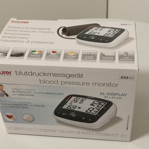 Todella vähäisellä käytöllä ollut ja erittäin hyväkuntoinen Beurer BM27 verenpainemittari. Ostettu reilu pari vuotta sitten uutena. Mansetin koko 22–42 cm.