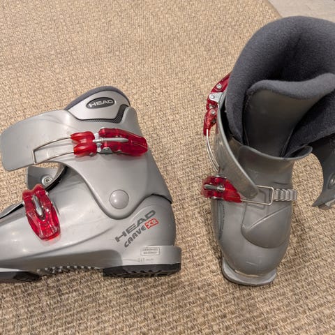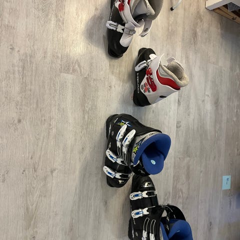 Lasten laskettelumonot koko 200-205, vastaa kokoa n. 32. Täysin ehjät ja vuori siisti sisältä, mutta päältä jo selvästi naarmuiset.
