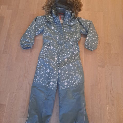 Reiman kolmen lumihiutaleen talvihaalari. Meille uutena ostettu ja viime talvena käytetty. Kunto siisti, muutama likatahra, jota en ole pessyt (erityisesti edessä ja hihoissa). En muista, että olisin sitä koneessa koskaan pessyt.