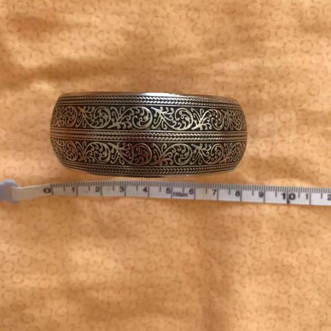 Hopeanvärinen Rannekoru Tiibetin hopea ympärysmitta 17 cm avonainen kokoa voi muuttaa leveys 27 mm käyttämätön kulkeutuu sovittaessa lähialueelle + postitus yht 24 €