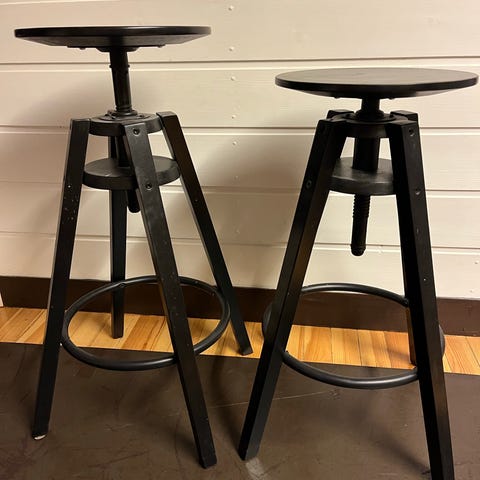 Myydään Ikean dalfred baarijakkara. Korkeus säädettävissä 63-74 cm, sopii siis noin 90-110 cm korkeisiin pöytiin.