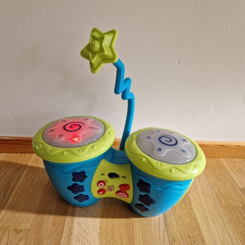 Noin 35cm korkea leikkirumpu. Lisäksi pikkurumpu ja kapulat.