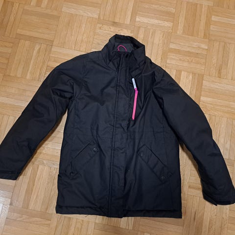 Musta takki. Takin koko 152 cm. Takissa on tikkivuori. Hieman vettä hylkivä ”öljykangas” pinta. Hyväkuntoinen vain muutaman kerran käytetty.