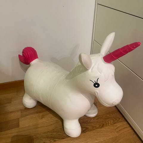 Harmaa pomppunorsu lasten lelu, valmistettu kestävästä materiaalista. Sopii leikkeihin ja lasten viihdyttämiseen.