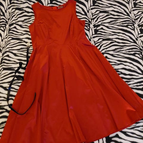 Myydään 50's tyylinen upea ruusumekko, jossa runsas kellohelma.