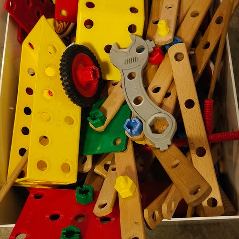 Myydään laatikollinen Brion rakennuspalikoita. Itse palikat erinomaisessa kunnossa, mutta kiinnitystangot puuttuu.