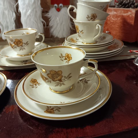 2 kuppia ja 4 asettia. Yhteensä 15 euroa. Piippuleimalliset.