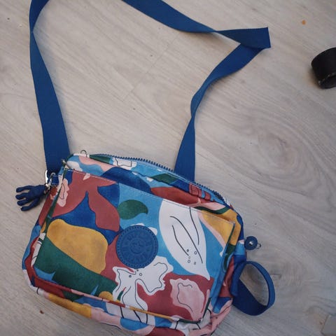 Laukusda on useita taskuja , edessä 3 vetoketjullista, takana tarralla. Sisällä myös useita. Pitkän hihnan saa irrotettua. Mukana apina nimeltä Davina.