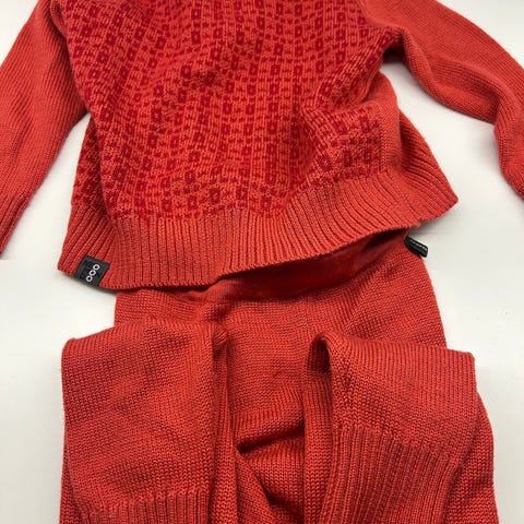 Erinomaisessa kunnossa. Päällinen 80% merinovilla ja 20% polyamidi. Sisältä 100% polyester. Paidassa ei kahta kerrosta vaan neulottu yhteen yhdeksi materiaaliksi. Nouto Helsingin Viikinmäestä tai toridiili.