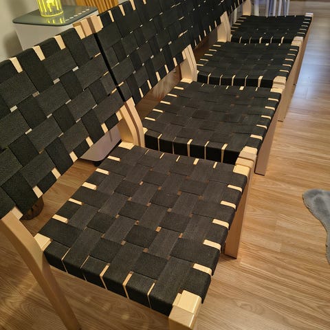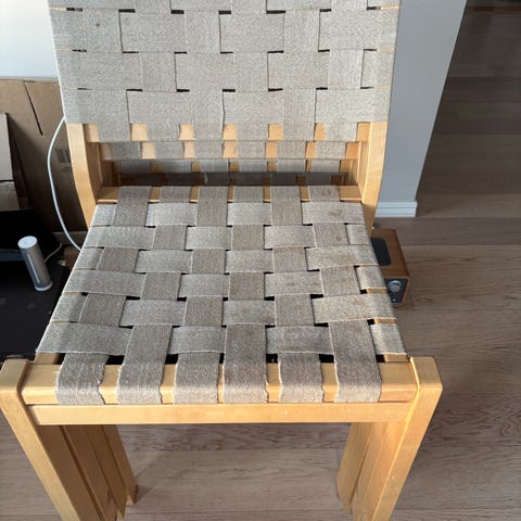Ostan omaan käyttöön Artek 611 tai 615 satulavyötuoleja, joissa on hyvä runko, mutta joiden vyöt kaipaavat vaihtoa.